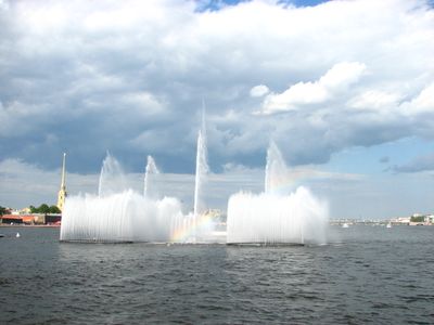 Fountain at Neva river, Musical fountain on the Neva River, Saint Petersburg, Russia