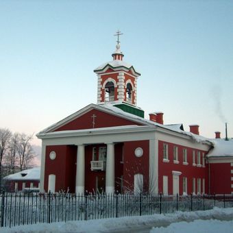 Saint John the Almoner Church stands on the grounds of Otradnoye with white walls and traditional Orthodox architectural elements marking the local landscape.