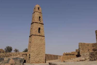 The minaret stands as the first of its type constructed in North Arabia, representing early Islamic architectural development in the region.